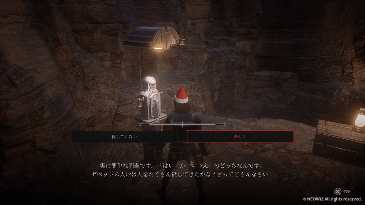 前回の失敗も踏まえて思ったまま「殺した」を選択。謎掛け王がサイコパスなのが確定した瞬間でもある。殺人鬼のそれらしい欺瞞に満ちた台詞の連続にテンプレ味を感じた。