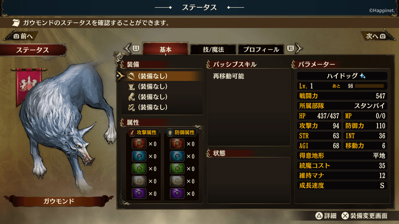 そこでセーブ&ロードで何か良い個体が出るまでちょっとリセマラしてみた。するとレア個体のハイドッグを引けた。まあそんなにこだわる事でもないだろうからリセマラをやり続けるような事はひとまずやめておこう。
