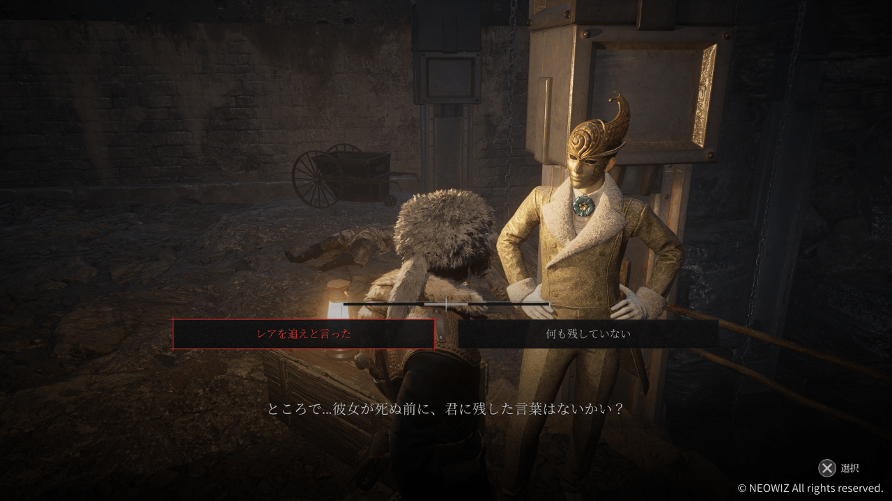 えーっとえーっと、と彼女が何を言っていたのか思い出していたらつい「レアを追えと言った」と言ってしまった。2周目の選択肢で唯一の真実となってしまった。これはやらかしたかもしれない。